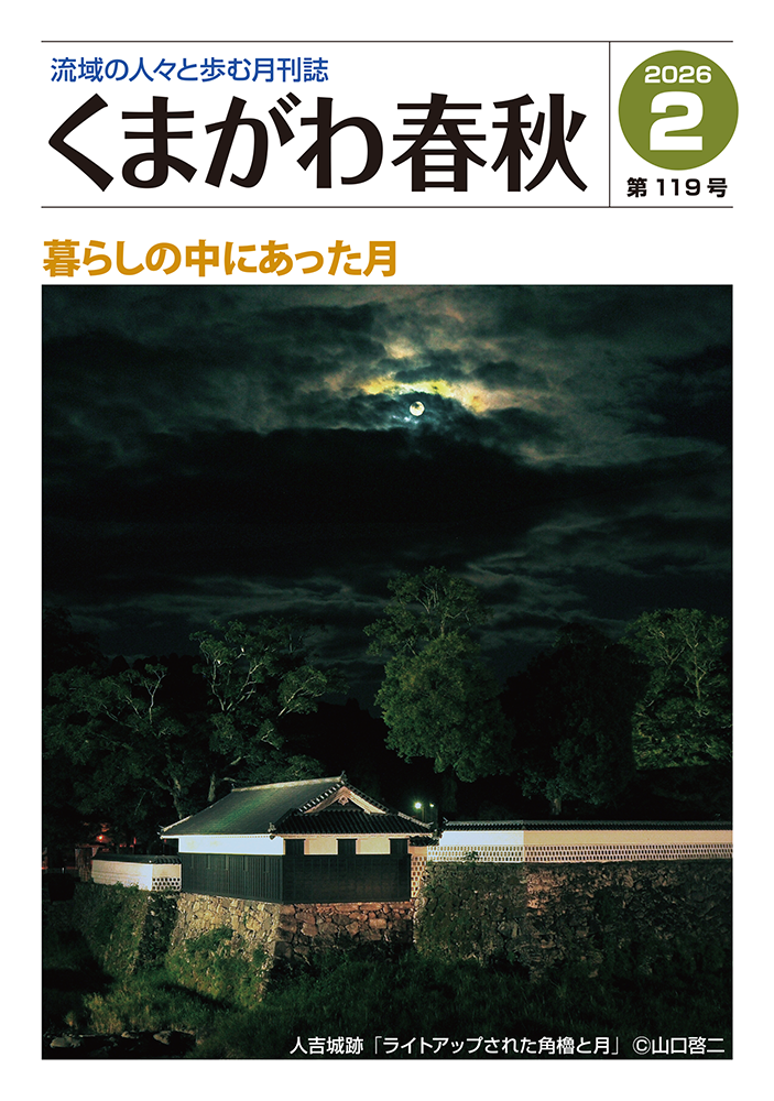 表紙写真:人吉城跡「ライトアップされた角櫓と月」(撮影/山口啓二)
